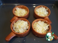 Полученную массу разложить по кокотницам, посыпать тертым сыром и отправить в разогретую до 210С духовку на 10-15 мин. |