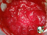 Готовим начинку: бруснику пюрируем с помощью блендера, всыпаем 60 грамм сахарной пудры, смешиваем |