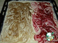На одну половину теста выливаем шоколад, делаем рисунок (я делаю с помощью палочки) |