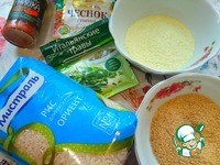 Набор продуктов скромен и прост: рис, картофельные хлопья (для приготовления картофельного пюре), панировочные сухари, манка, растительное масло и специи. |