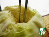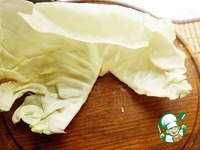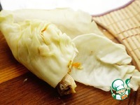 Приступаем к формированию голубцов. Вырезаем с капустных листьев твердые жилки. |