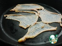 Жира на этой шкурке не много и его как раз хватит, чтобы поджарить голени. Кладем шкурки на разогретую сковороду, накрываем крышкой и вытапливаем жир не медленном огне минут 5-7. |