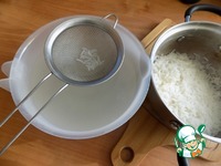 Отвар процеживаем через сито или дуршлаг. Я буду делать немного блинов и для теста я взяла 300 мл отвара рисового. |