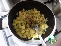 Для начинки я выбрала кабачок. Он отлично подойдёт к отваренному рису. Режем его мелким кубиком. |