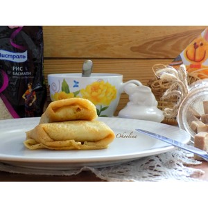 Описание: Блины бездрожжевые для тех, кто не ест дрожжевую выпечку. Без яиц довольно не просто испечь тоненькие блины. Я вам хочу предложить постные очень тонкие блины на рисовом отваре, фаршированные рисом и жаренным кабачком с луком и чесноком. Нафаршировать блины можно по-разному, чем вы захотите, главное, чтобы начинка была тоже постная.