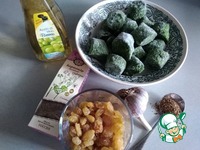 Сейчас небольшое отступление на тему шпината. Замороженый он бывает разный-мне попадался порезанный (как в этом случае) и в виде скрученных в шарик листьев. От этого зависит время дальнейшего тушения. Если порезан-нужно, чтоб он только растаял и начал "схватываться", влага из него уходит очень быстро. Если листочки, то придется пару минут потушить после оттаивания. То же и со свежим шпинатом (и лучше брать небольшие листочки) В этом блюде мне больше нравится порезанный или свежий. Важно не передержать шпинат, иначе он станет бурой массой.