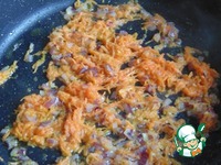 Репчатый лук мелко порезать, морковь натереть на тёрке (у меня замороженная). |