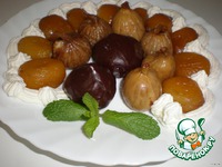 И абрикосы, делаются почти по такому же принципу замачиваются, фаршируются грецкими орехами, затем варятся 15-20 мин. Охлаждаются, сливается сироп и фаршируются кремом. |