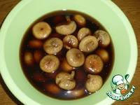 Вымачиваем инжир в сладком, красном вине с добавлением воды (процесс длительный, я вымачивала почти два дня; первый день на столе в миске, а второй день в холодильнике). |
