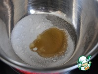 Кладём в миску сахар, наливаем мёд и нагреваем на медленном огне до полного растворения сахара. |