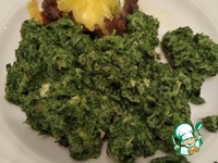 К шпинату добавляем майонез, рубленый чеснок, солим, перчим по желанию. Закрываем крышкой минут на 10. В конце приготовления выливаем туда яйцо, и оставляем еще на минуту. |