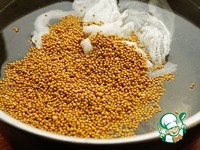Узелок отправляем в воду. Туда же добавляем горчицу, соль и сахар. Доводим до кипения и варим минут пять. Вливаем уксус. |