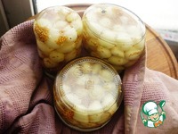 Заливаем горячим маринадом и закрываем. Чтобы горчица попала в банки, постоянно его перемешивайте. Банки переворачиваем, укутываем и оставляем до остывания. Через неделю лук будет готов. |