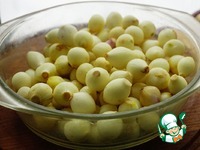 Чтобы это было сделать легко, опускаем наши мини-луковички в кипящую воду и бланшируем секунд 30. Далее, при помощи шумовки, перекладываем наши луковички в ледяную воду. |