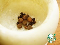 Готовим маринад. В ступку кладем гвоздику и половину черного, белого и душистого перца. |