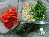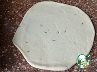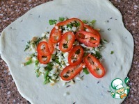 Большие куски также раскатать в круг, выложить на него по 1 ст. л. начинки и разложить перец. |
