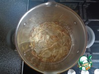 Лук порежем полукольцами и обжарим на растительном масле в течение трёх минут. |