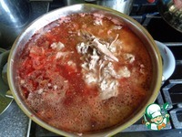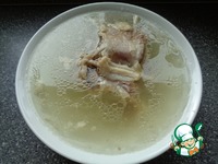 Дольём в кастрюлю 1,2 литра готового мясного бульона, у меня из баранины. |