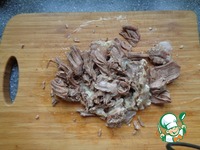 Мясо отделим от костей и разберем на порционные кусочки. |