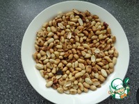 Арахис поджарим на сухой сковороде в течение 7-8 минут до активного потрескивания ореха, даём остыть и очищаем от шелухи. |