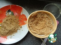 Добавляем к арахисовой муке две столовые ложки растительного масла. Перемешиваем. Вот такая крошка получается. |