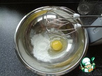 К яйцу подсыпаем сахар, ванилин и разрыхлитель. |