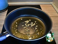 Мелко нарезать и обжарить 1-2 минуты чеснок на оливковом масле. |
