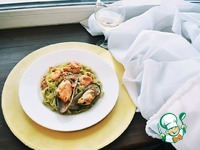 Выкладываем пасту, сверху соус, можно дополнить бокалом белого сухого вина) Приятного аппетита!) |