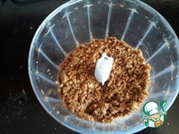 Возвращаемся к нашим коржам, точнее к обрезкам от них) измельчаем их в крошку любым удобным способом, я делала это в блендере. |