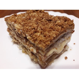 Описание: Этот торт родился в попытке взять лучшее из двух любимых мною десертов - штруделя и наполеона. Получился очень простой в исполнении нежный яблочный торт с заварным кремом. Готовится довольно быстро из доступных продуктов и не требует больших трудозатрат, зато съедается в два счета). Отличный вариант для семейного чаепития, я пекла его для поездки к родителям. Кстати, дорогу он перенес хорошо, что тоже говорит в пользу тортика.