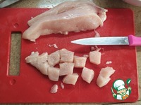 5. Нарезать куриное филе кубиками примерно 1,5 см. |