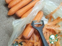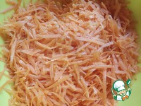 3. Нашинковать морковь (должны получиться крупные длинные ломтики, так салат будет более сочным) |