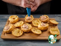 С каждой булочки срежьте макушку и наполните профитроли начинкой. Накрываем срезанными макушками и подаем. Приятного аппетита! |