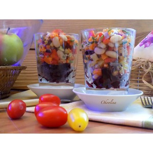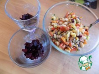 Описание: Сытный и вкусный овощной салат с белой консервированной фасолью и пикантной заправкой. Для подачи дополнила салат отварной свёклой, которую поместила на дно порционного стакана. В итоге: салат не окрасился цветом свёклы, а для тех, кто любит свёклу это отличное и полезное дополнение.