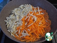 Лук, морковь и сельдерей спассеровать до мягкости. |