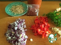 Подготовить все ингредиенты. Вместо лечо можно использовать томатный сок или помидоры. Магазинную томатную пасту я бы не советовала. |