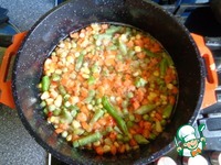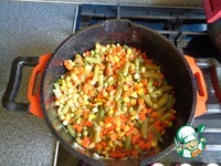 Следующим этапом кладем овощную смесь, даем закипеть и тушим 7 минут. |