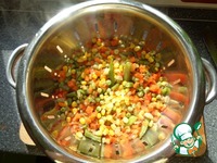 Отваренную овощную смесь сливаем на дуршлаг. |