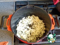 Разогреваем растительное масло, кладем порезанный репчатый лук. |