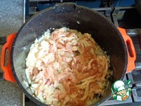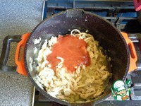Добавляем томатный соус, перемешиваем и тушим 3 минуты. |