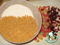Вяленую черешню и цукаты порезать, если крупные, смешать с молотым миндалем и мукой. Можно просто взять одних цукатов или любых других сухофруктов (чернослив, курага, финики). |