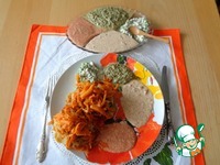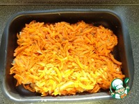 Сверху кладем подготовленную морковь. Посыпаем любимыми приправами и ставим в духовку на 30-40 минут. |