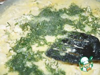 Добавляем зелень и крахмал, тщательно перемешиваем, тушим 2 минуты, соус должен загустеть. |