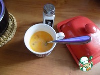 На два яйца (на порцию) желательно взять сковороду D~20 см, чтобы яйца полностью залили дно и толщина омлета будет оптимальная. На сковороду выкладываем 1 ст л масла, растапливаем его. |