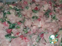 Куриную грудку порезать мелкими кубиками, мелко порезать чеснок и лук. |