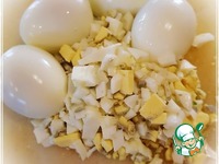 С яйцами все просто. Режем – рубим. Тоже некрупно. |