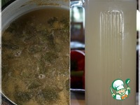 Ну, вот. Сметанки туда, сколько душа пожелает. Редиски упомянутой, если кто любит, и заливаем квасом. Тем самым … ароматным, густым, ржаным квасом. Ох, он и, простите, ядреный!!! |