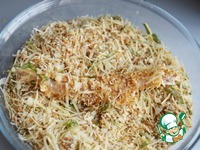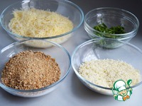 В миску добавьте толченый миндаль, панировочные сухари, тертый сыр, перец и нарезанную петрушку. |