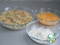 В отдельной миске взбейте вилкой яйца, добавив соль. Поместите муку в другую миску. |