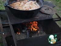 Начну я сегодняшний рецепт с чугунного друга. Если Вы купили новый казан, его необходимо хорошенько прокалить на плите или на огне (амбре не ахти). Берете бутылку самого дешевого растительного масла и выливаете в казан, калите на сильном огне довольно долгое время часа 3-4. Это необходимо для того, что-бы перегорело машинное масло, оно нам в блюдах ни к чему. Если дома, открывайте форточку. У меня не благоухал только Таллеровский вок. Масло вылить и выбросить. Казан вымыть горячей водой, насухо протереть и смазать растительным маслом. После каждого приготовления пищи из казана, все остатки пищи переложить, вымыть чистой водой без моющих средств, вытереть насухо и смазать растительным маслом. И казан отлично Вам будет служить верой и правдой. С годами будет становится только лучше. Растительным маслом казан у Вас уже смазан, выкладываете в него мытые крылышки, соль, специи и хорошенько перемешиваете. |